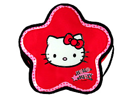 Material (canvas feel) lunchbox with raised plastic Hello Kitty design on the front. Vinyl (PEVA) lined and insulated. Zipper closure. Shoulder strap. Comes with a water bottle (not shown). BPA and PVC free.